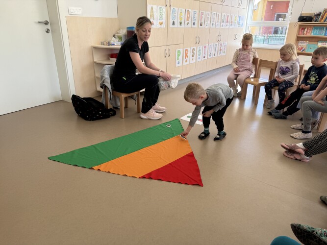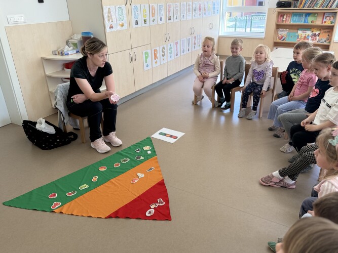 Otroci so postavili prehransko piramido, kjer so uspešno razporedili živila, glede na njihovo zastopanost na jedilniku – pogosto, nekajkrat tedensko, zelo redko ob posebnih priložnostih.